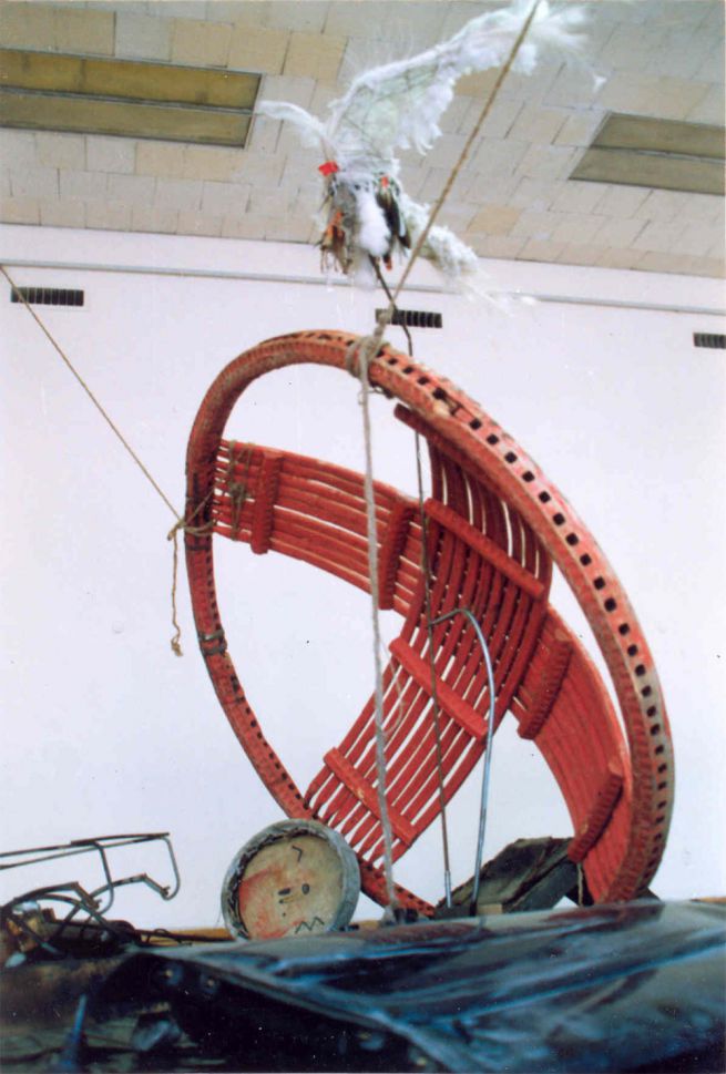 «Летающий белый», 1997 год. Автор: Рустам Хальфин. Гусиная кожа, пластик, дерево, черный лак, камень.